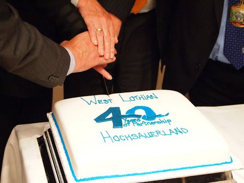 In 2012 we celebrated our partnership with Hochsauerland by holding a special evening to commemorate 40 years of twinning. The guests for the evening included the Landrat from Hochsauerland, (Herr Dr. Karl Schneider) and the chairman of the Hochsauerland Twinning Association Erhard Schäffer. One of the original signatories to the twinning agreeement, Ferdi Tilmann, was delighted to return once more to West Lothian. The Provost of West Lothian Tom Kerr and the Leader of the Council John McGinty were also in attendance. Many of the guests attending the evening were the people who had made the twinning association successful over this long period. Many old friends were brought together to remember.